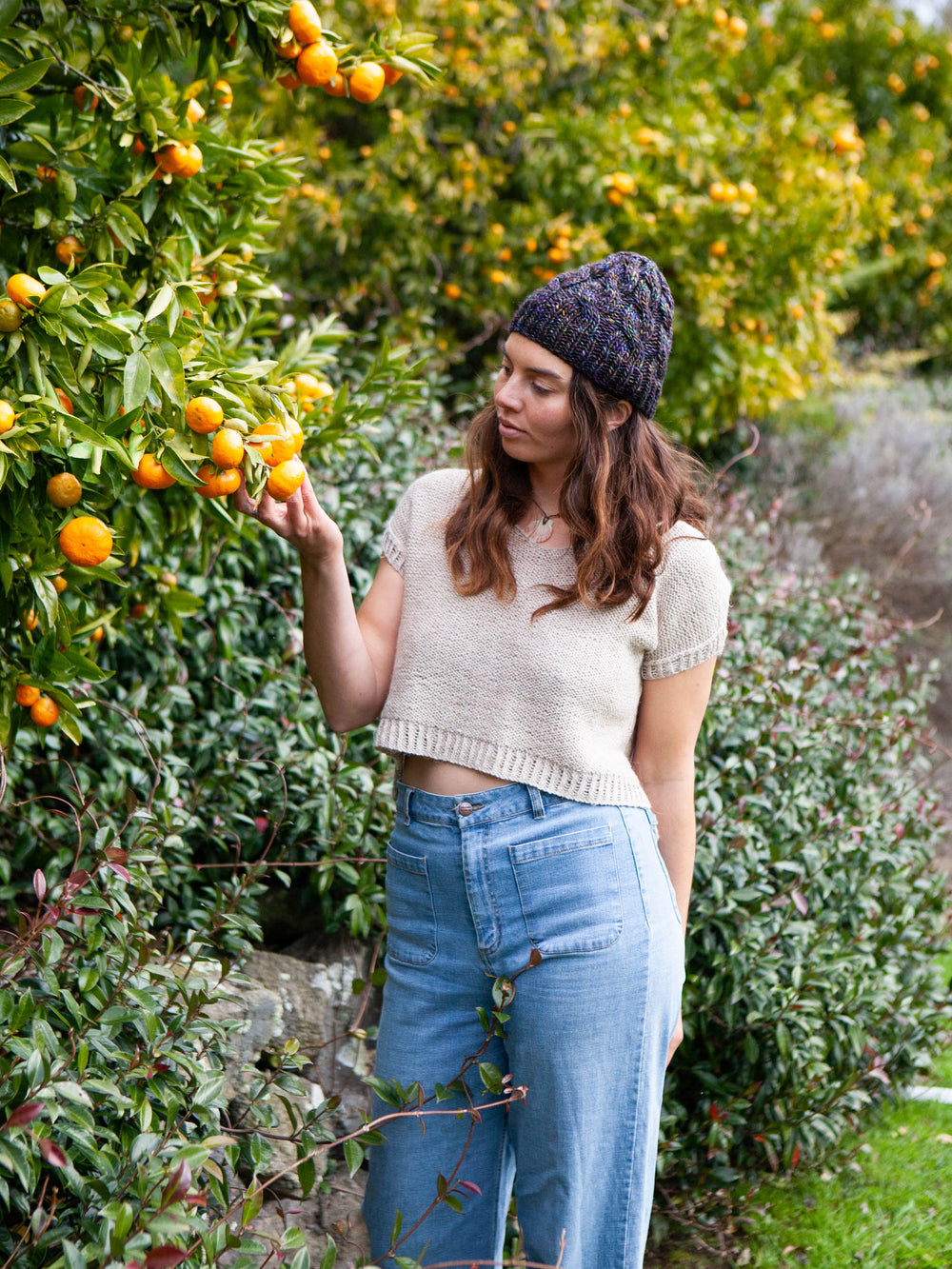 The coolest cable beanie in Malabrigo Mecha superwash Merino! The yarn is kettle dyed to produce a stunning colour effect.