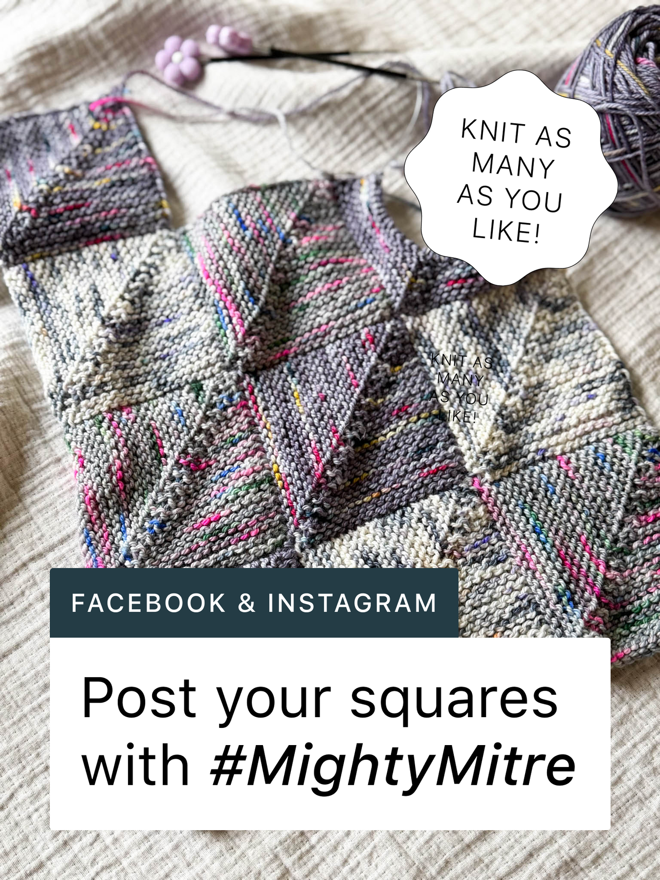 ✅ Share your squares with #MightyMitre in the Unravelled Knitting Club, Skool Community or other social media — we’d love to see them 😊