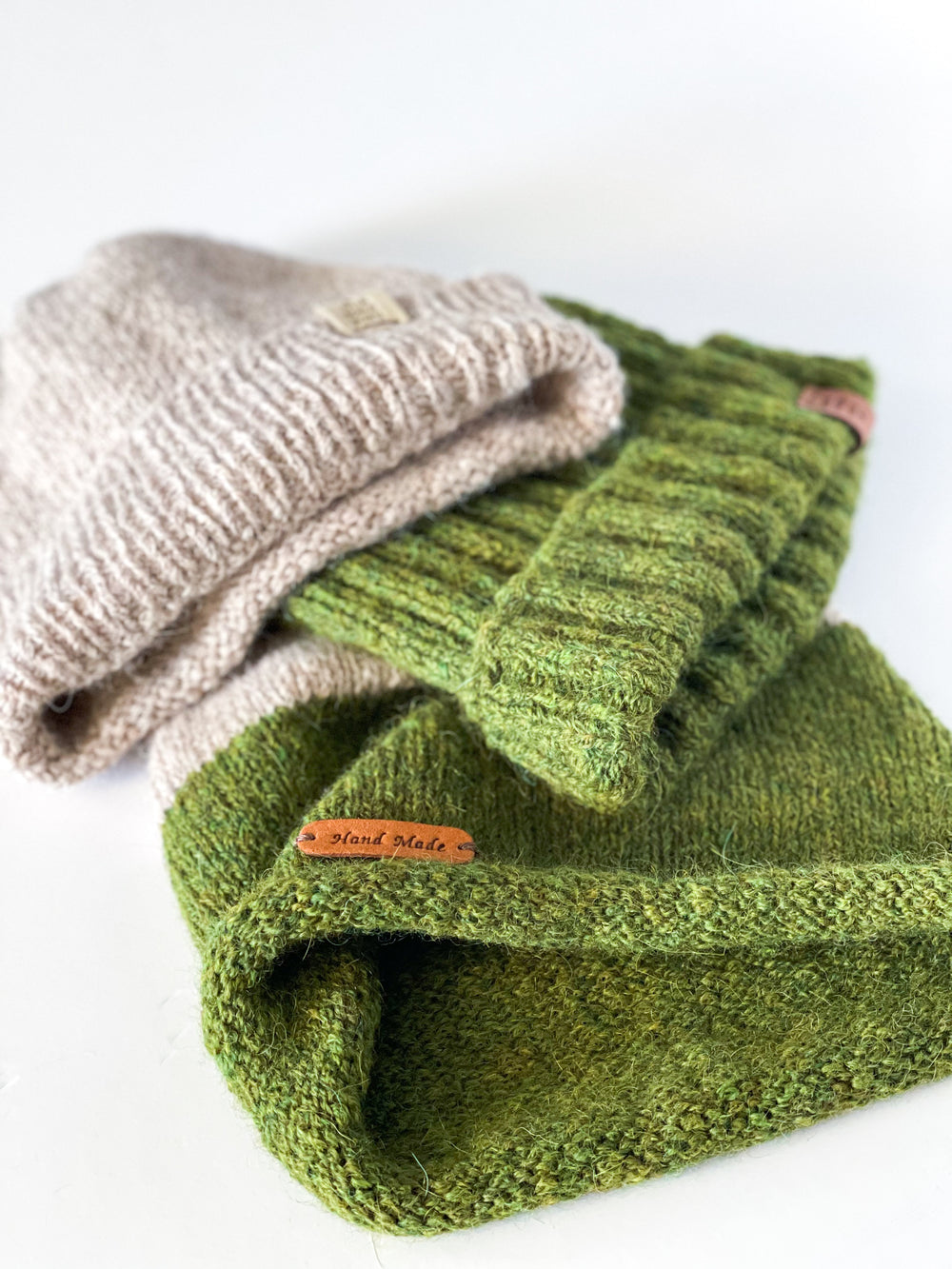 3 x Faux leather tag 'Made-by-hand' to stitch on your cherished beanies