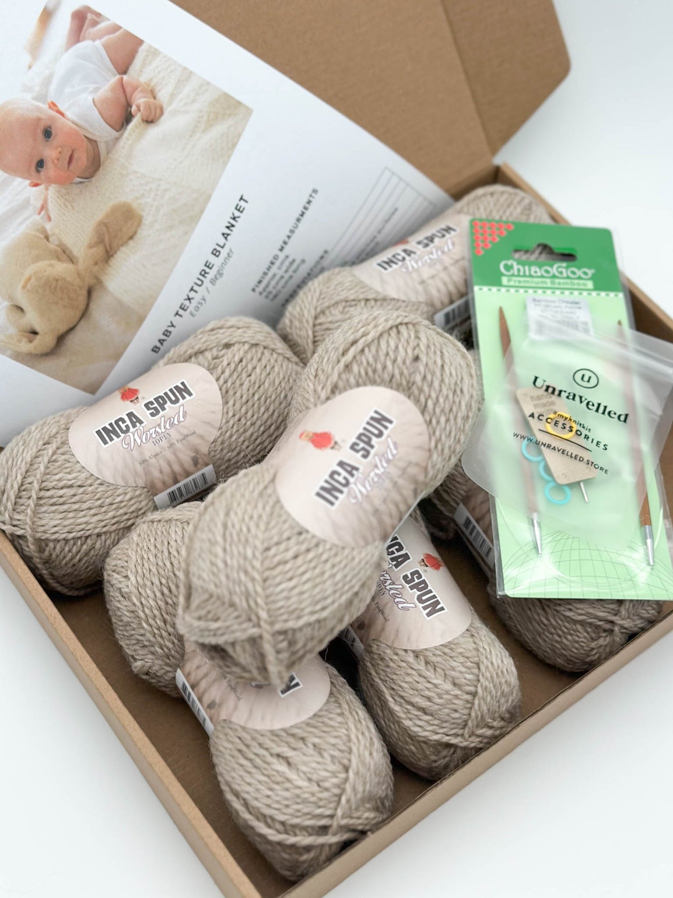 Your kit is carefully packaged and delivered to your door with everything you need to knit your project.
