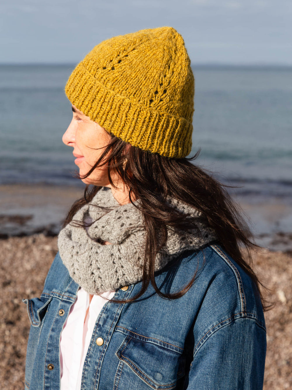 We’ve teamed up with Katherine Fedewa of Sweaterbabe to bring her stunning designs to two All-In-One knitting kits: the Esme Beanie and Audra Cowl (sold separately).