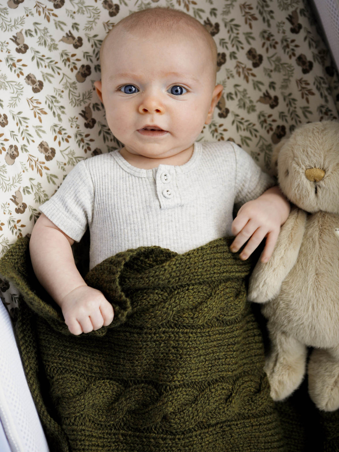 By popular demand, we’ve reintroduced our Mini Cable Blanket design in beautiful 100% Highland Woolstok. (originally in organic cotton).