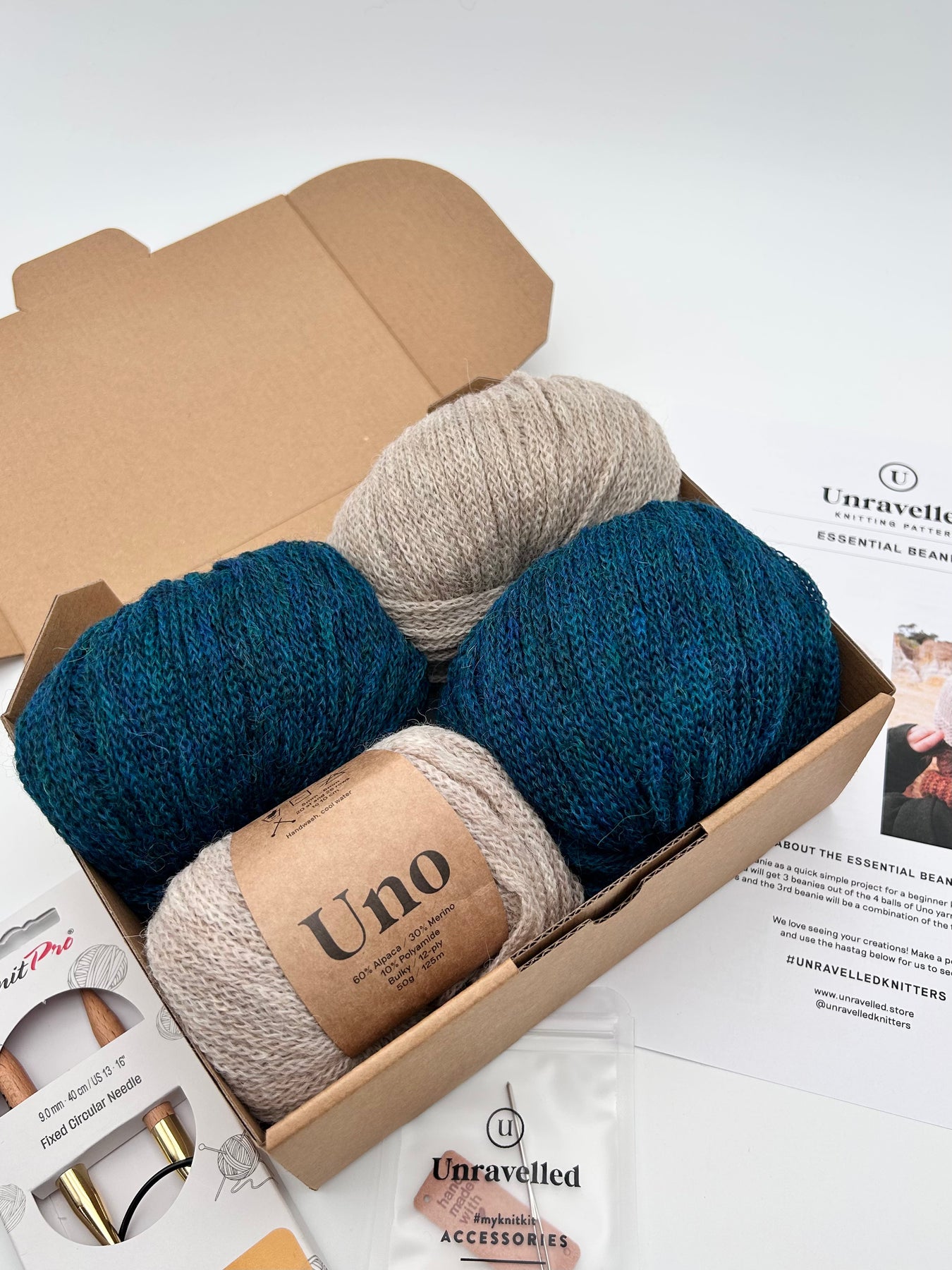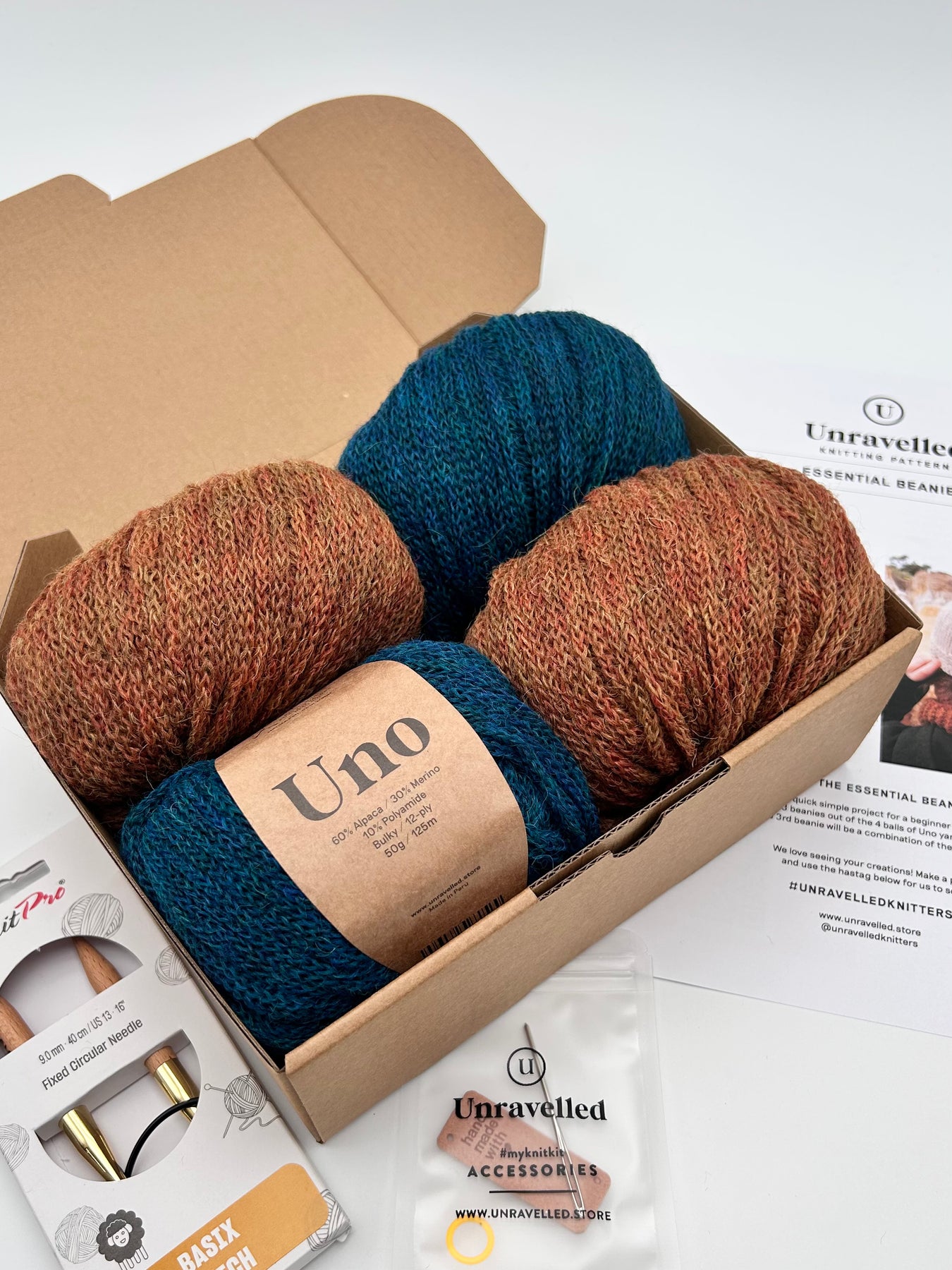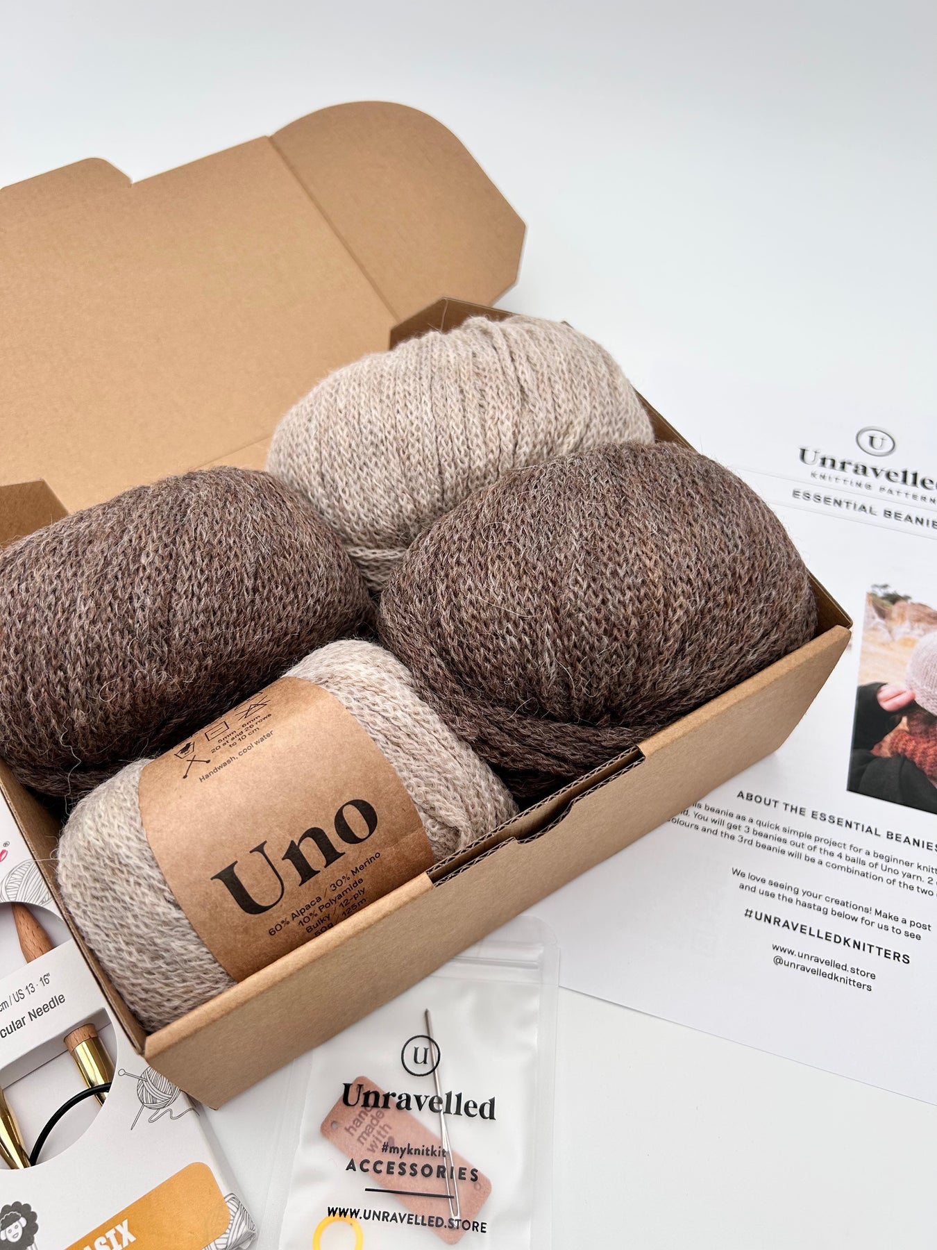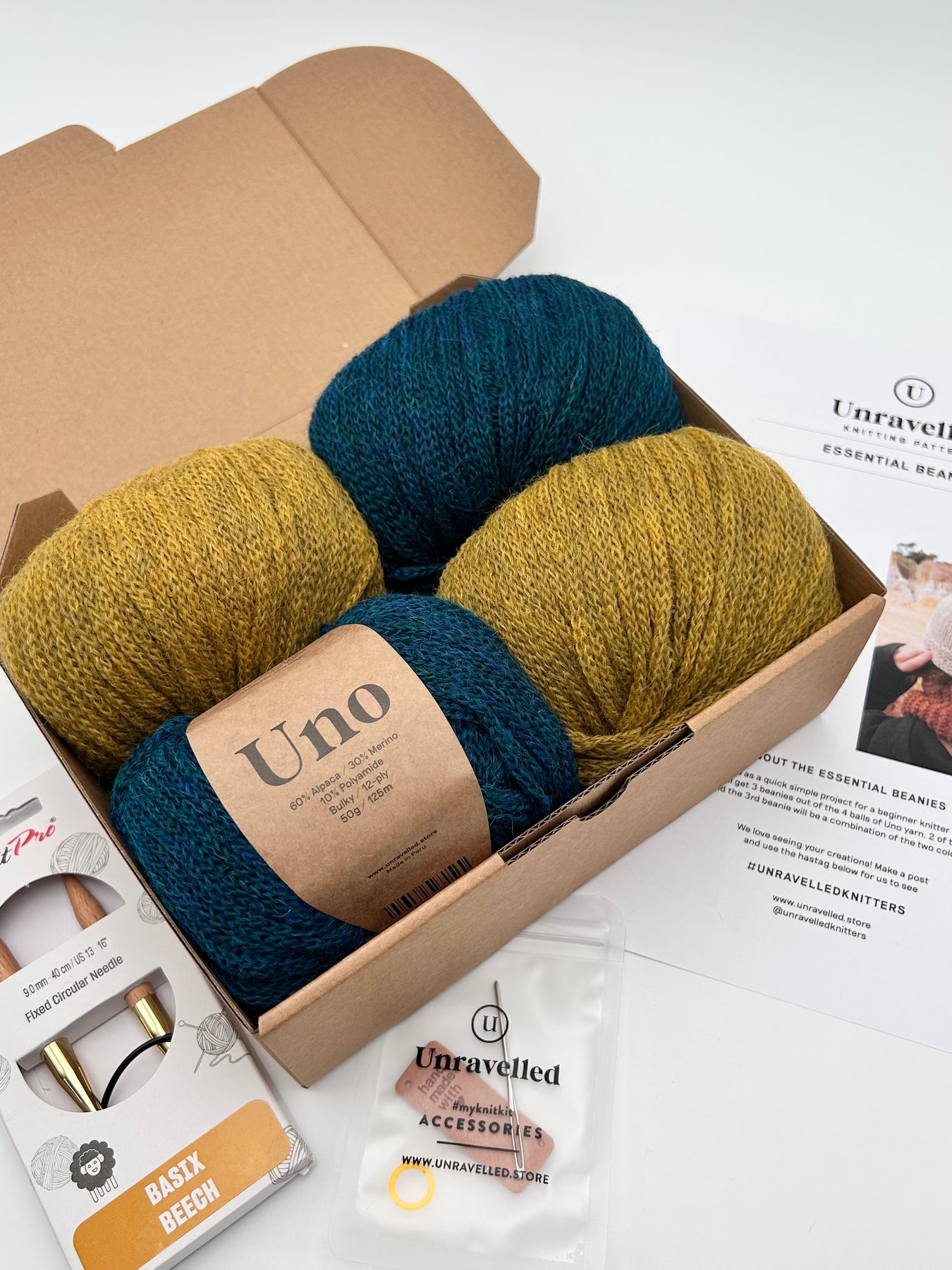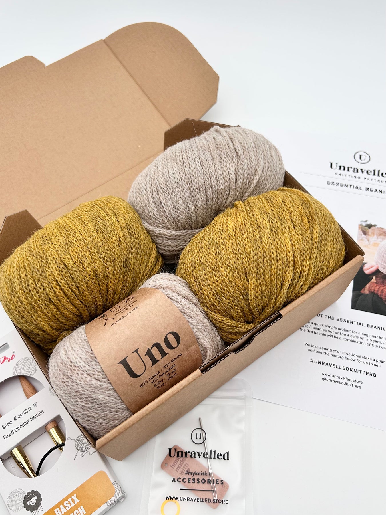 Inside the Essential Beanies Knitting Kit, you’ll find: