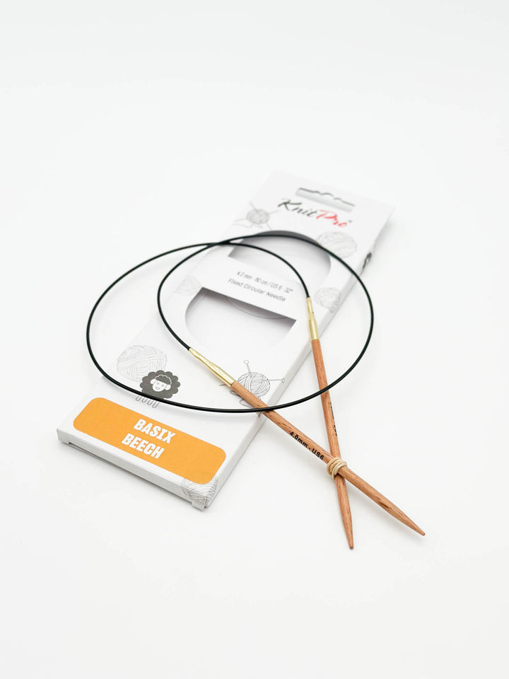 Basix Beech KnitPro 4mm/80cm (US 6/32") fixed circular knitting needles.