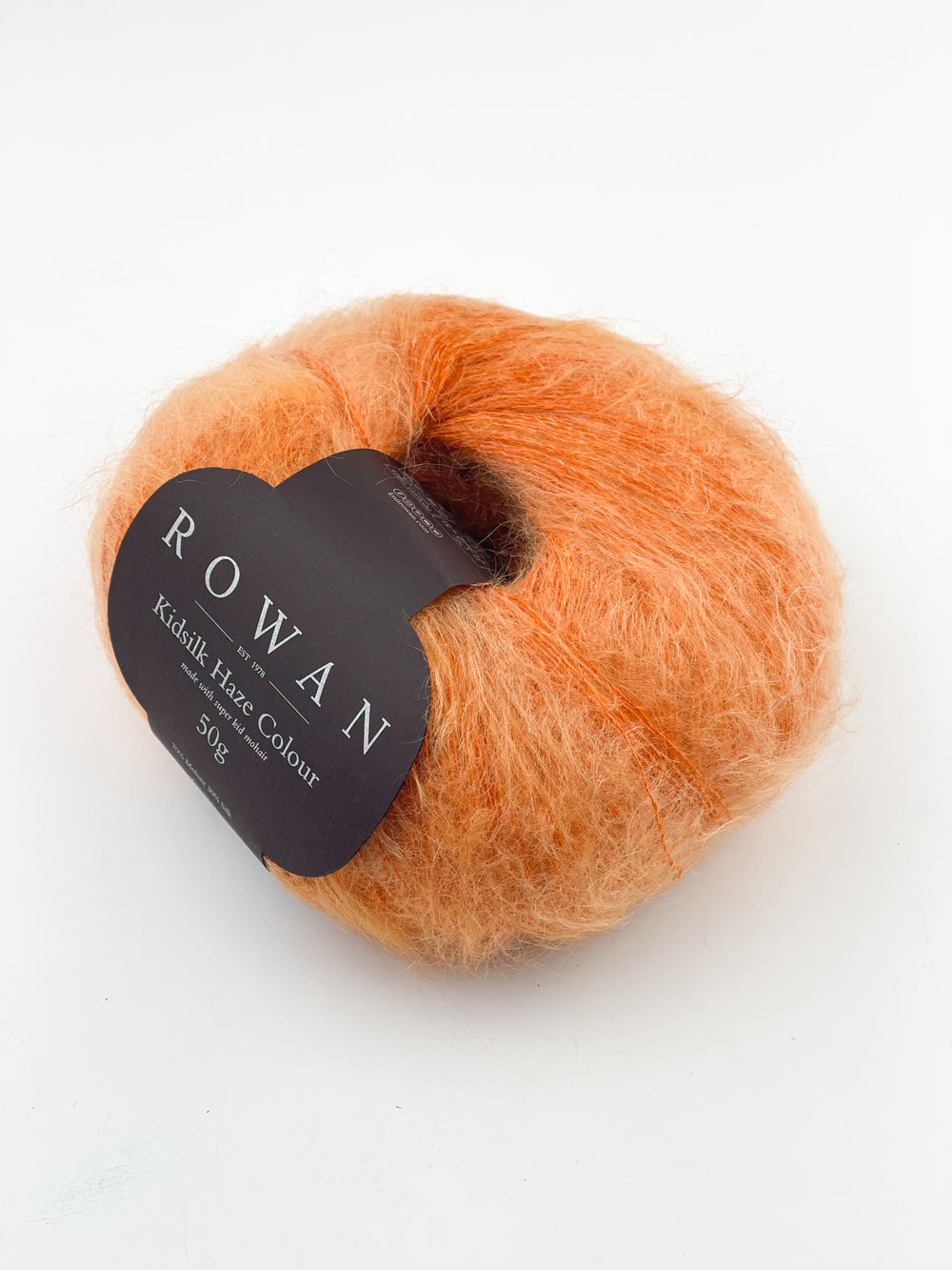 We are so excited to introduce Rowan Kidsilk Haze Colour, a brand new Rowan yarn that is sister to the original Rowan Kidsilk Haze. In addition to its light sheen and delicate halo, each 50g ball of Kidsilk Haze Colour brings a subtle tonal variegation to all your projects.